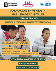 Casa de la Mujer de la Unión y la Intendencia de Montevideo a través de la Secretaria de Equidad Étnico Racial y para Poblaciones Migrantes (SEERPM), con el apoyo de la Agencia de la ONU para los Refugiados (ACNUR), ponen a disposición para personas Refugiadas y Migrantes, que residan en Montevideo y Área Metropolitana, este espacio de capacitación para el trabajo de forma gratuita.